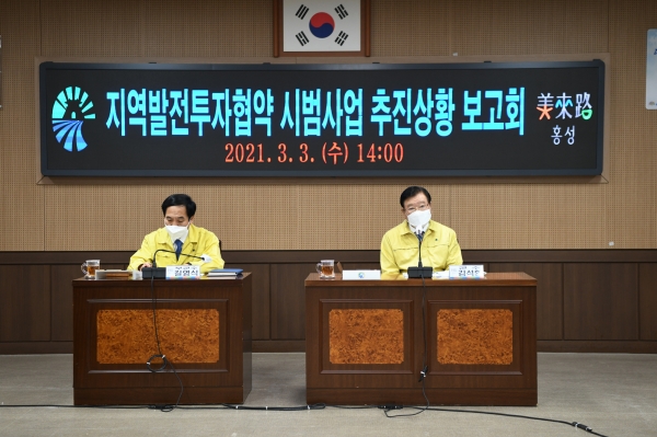 [한국Q뉴스] 홍성군은 지난 3일 지역발전투자협약 시범사업 추진 진행상황 보고회를 개최하고 소프트웨어 및 하드웨어 사업 추진 등 보고를 통해 사업이 차질 없이 추진 될 수 있도록 사전 점검하는 자리를 가졌다.
