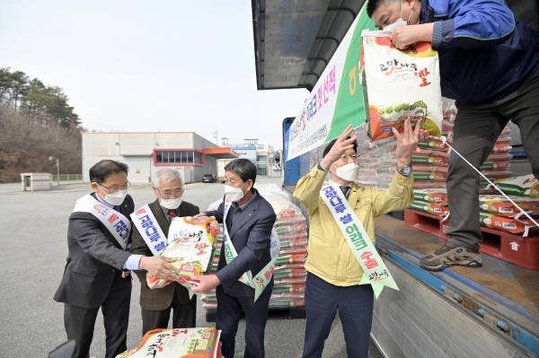 시는 3일 공주농협통합RPC에서 올해 첫 수출 선적식을 갖고 고맛나루 쌀 10kg 1,600포대, 총 16톤을 이라크로 보냈다.