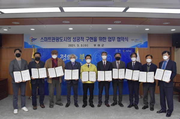 현재 부여군은 스마트관광 조성사업 공모를 위해 지난 2월, 역량 있는 벤처 및 스타트업 기업과 컨소시엄을 구성해 사업을 계획하고 있으며 스마트 관광 5대 요소를 부여군의 관광자원과 융합해 지역 관광 경쟁력을 강화하고 스마트관광 생태계 조성하는 데 목표를 두고 있다.