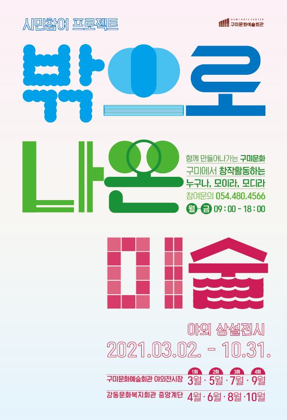 또한 코로나19 장기화로 활동 기회를 잃은 예술가들과 시민들에게 전시 참여 기회를 제공하는 동시에, 참여시민 모두가 다채로운 작품들로 구미문화를 함께 만들어가는 점에 의미가 있다.
