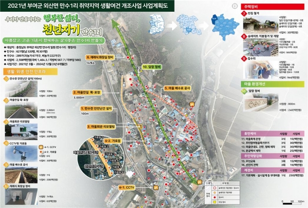 [한국Q뉴스] 부여군이 5일 대통령 직속 국가균형발전위원회에서 공모한 2021년 농어촌 취약지역 생활여건 개조사업 신규 사업대상지로 외산면 만수1리와 내산면 운치 3리가 최종 선정됐다고 밝혔다.