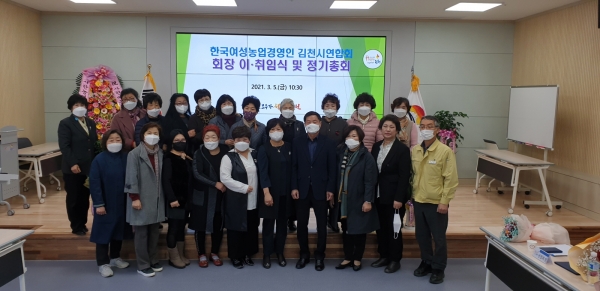 [한국Q뉴스] 한국여성농업인 김천시연합회는 제5대 윤숙희 신임회장과 3대, 4대 김갑분 회장의 이·취임식을 농업기술센터 농경유물관 회의실에서 개최했다.