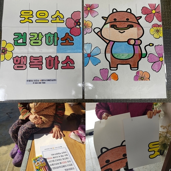 2018년부터 치매보듬마을로 지정되어 있던 북안면 당1리, 임고면 효1리, 금호읍 호남리와 화산면 화산2리에 거주하는 치매 군, 인지저하 군, 정상 군 총 59명의 어르신들이 이번 사업에 참여했으며 한 개의 도안을 여러 조각으로 나누어 주고 어르신 개개인이 각 가정에서 색칠 등 그림을 만든 조각으로 한 작품을 만드는 협동화 작업을 실시했다.
