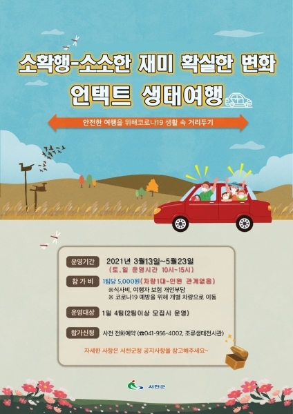 [한국Q뉴스] 서천군은 이달 13일부터 가족단위 관광객들을 대상으로 하는 언택트 생태관광여행 프로그램을 운영한다.