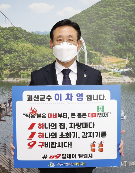 [한국Q뉴스] 충북 이차영 괴산군수는 9일 소방시설 설치의 중요성을 강조하는 ‘119 릴레이 챌린지’에 동참했다.