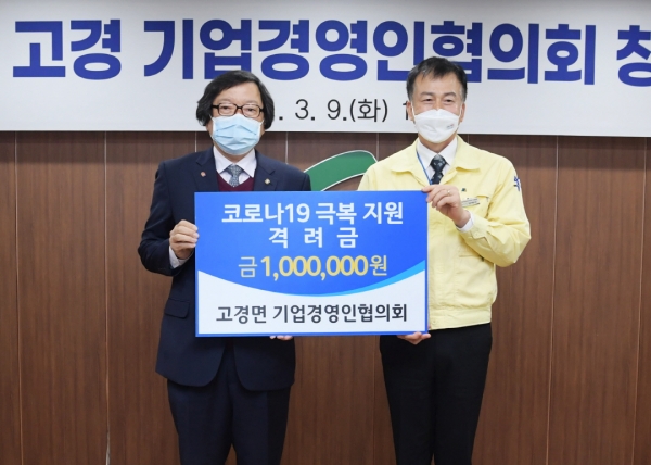 특히 이날 행사에서는 지역인재육성을 위한 장학금 300만원을 기탁하고 행정의 최일선에서 지역민들을 위해 노력해온 고경면 직원들과 지역의 소외계층을 위한 격려금 100만원을 전달하는 등 장기간의 코로나 사태로 어려움을 겪고 있는 지역사회를 위한 성금을 기부해 코로나로 경직된 지역사회에 온기를 더했다.