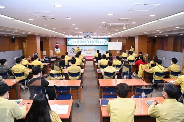[한국Q뉴스] 김천시는 3월 8일부터 2주간 토목직 공무원을 대상으로 한 맞춤형 직무교육을 2층회의실에서 실시하고 있다.