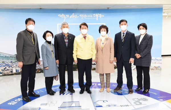 [한국Q뉴스] 군위군 대구광역시 편입추진특별위원회 및 통합공항이전 특별위원회는 9일 오전 대구시장을 만나 군위군 대구편입추진을 촉구했다.