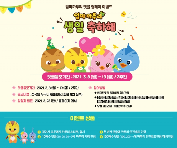 당첨자 발표는 3월 23일 엄마까투리 홈페이지에 게시될 예정이다.