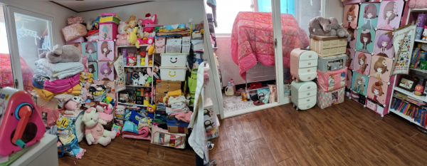 아동과 모가 열악한 환경에서 생활하며 유통기한이 지난 식품을 섭취할 경우 건강을 해칠 우려가 있어, 오래된 음식 및 식료품, 버리지 못하고 모아둔 여러 작은 사이즈의 옷과 짐들을 정리해 생활공간을 넓게 만들었다.