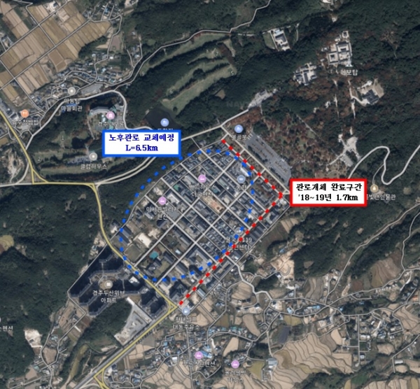 시에 따르면 지난 1974년에 매설된 경주시 진현동 불국사 상가 및 숙박단지 일원의 상수관로는 노후화로 인해 탁수가 발생하는 등 전체적인 정비가 절실한 상황이다.