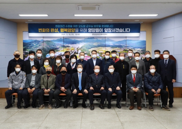 [한국Q뉴스] 오도창 영양군수는 2021년도 군정을 역동적으로 추진하기 위해 오늘부터 영양군 6개 읍·면을 순차적으로 방문해 군민과의 대화 시간을 갖는다고 밝혔다.