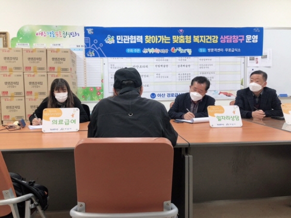 [한국Q뉴스] 아산시 행복키움지원단이 10일 온양온천역 무료급식소 사무실에서 찾아가는 맞춤형 복지 상담창구를 운영했다.
