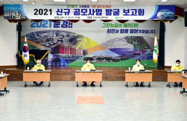 [한국Q뉴스] 문경시는 3월 10일 시청 대회의실에서 관계 공무원 등 30여명이 참석한 가운데 정부정책 방향에 대한 전략적 대응을 위한 ‘2021 신규 공모사업 발굴 보고회’를 개최했다.