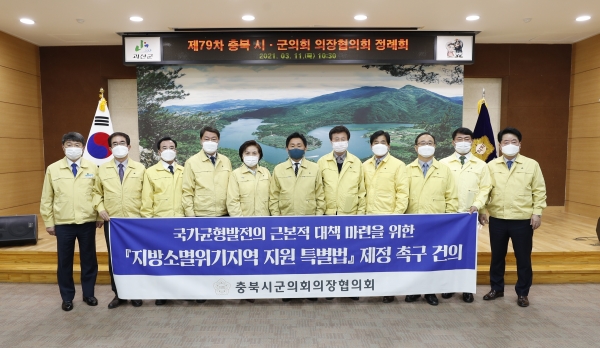 또한 이날 시·군의회 의장들은 저출산·고령화가 심화되고 수도권으로 젊은 인구가 유출되면서 상당한 지역에서 존폐 자체를 걱정해야 하는 상황에 직면해 있다면서 국가균형발전의 근본적 대책 마련을 위한 ‘지방소멸위기지역 지원 특별법’의 조속한 통과를 촉구했다.