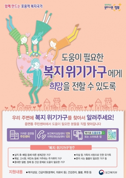 전명희 복지정책과장은 “복지제도를 몰라서 지원을 받지 못하는 경우가 발생하지 않도록 현장중심의 복지정책을 실천할 것이며 주변에 도움이 필요한 가정이 있으면 읍면동 행정복지센터, 시청 희망복지지원단으로 즉시 알려주시길 바란다”고 당부했다.