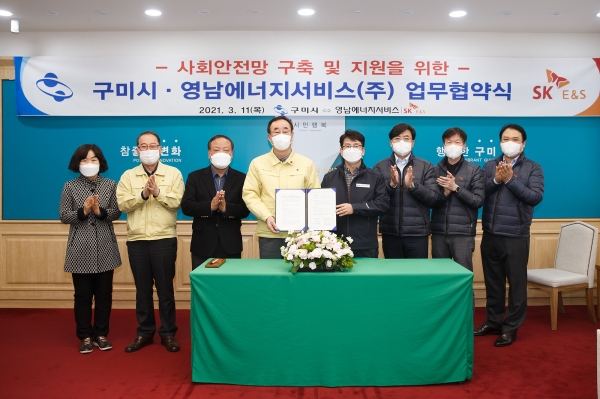 [한국Q뉴스] 구미시는 지난 11일 시청 국제통상협력실에서 영남에너지서비스와 “사회안전망 구축 및 지원을 위한 실무협약”을 체결했다.