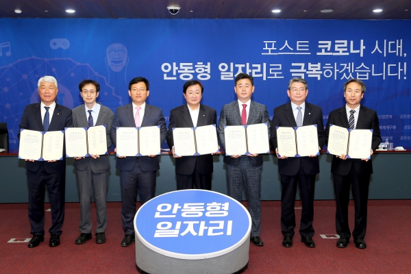 이를 위해 안동형 일자리사업단을 설치·운영하는 것을 골자로 한 협약을 체결하고 지난 2월 안동대학교 내에 안동시와 안동대학교는 공동사업단장, 센터장, 공무원, 연구원 등 총 12명으로 조직을 구성해 “안동형 일자리 사업단”을 꾸렸다.