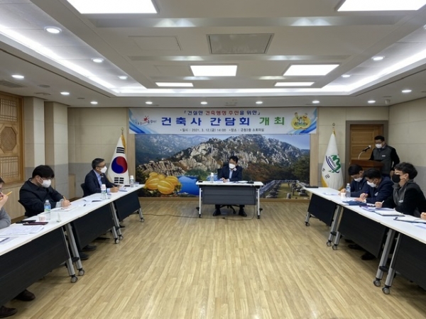 [한국Q뉴스] 성주군은 허가과 신설에 따라 3월 12일 군청 소회의실에서 지역 건축사들과의 소통 및 업무연찬을 통해 건축행정 질서 확립과 발전을 위한 건축사 간담회를 개최했다.