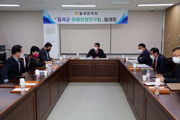 [한국Q뉴스] 칠곡군 미래의정연구회는 지난 12일 칠곡군의회 3층 회의실에서 회원 6명과 관계자들이 참석한 가운데 연구단체 등록 이후 첫 월례회를 열었다.