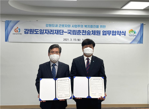 [한국Q뉴스] 강원도일자리재단은 도내 기업주와 근로자에게 제공하는 기업복지서비스의 활성화를 위해 국립춘천숲체원 과 15일 오후 업무 협약을 체결했다.