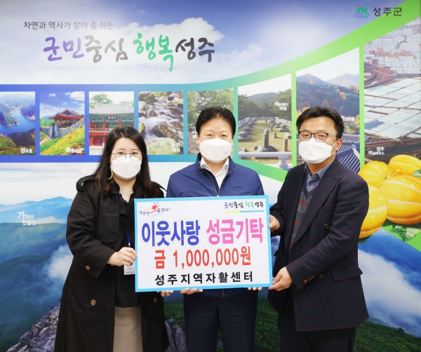 이병환 성주군수는 “힘든 시기임에도 불구하고 어려운 이웃을 먼저 생각하는 성주지역자활센터 권우성 센터장과 직원들에게 감사드리며 기탁한 소중한 성금은 도움이 절실한 이웃에게 의미있게 쓰이도록 하겠다” 전했다,