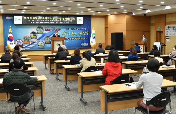 [한국Q뉴스] 경산시는 3월 16일 시청 대회의실에서 수강생과 관계자 등 40여명이 참석한 가운데 ‘2021년 경산시마을평생교육지도자 양성과정’개강식을 가졌다고 밝혔다.