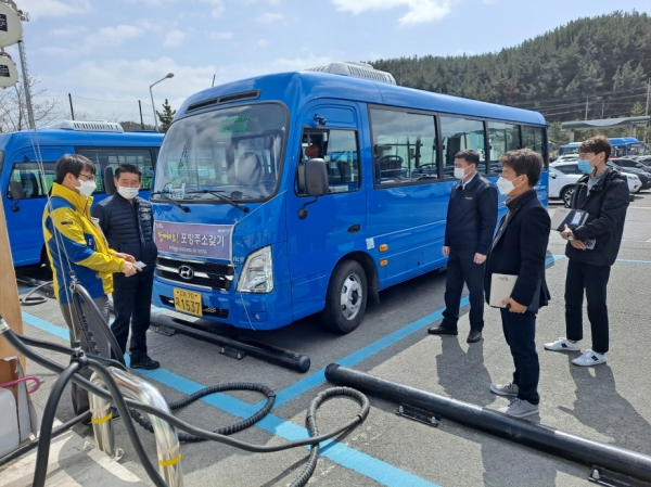 [한국Q뉴스] 포항시와 같이 전기 마을버스를 운영 중인 전라북도 전주시시설관리공단 직원 일행이 17일 전기 마을버스 운영 상황을 벤치마킹하기 위해 포항시를 찾았다.