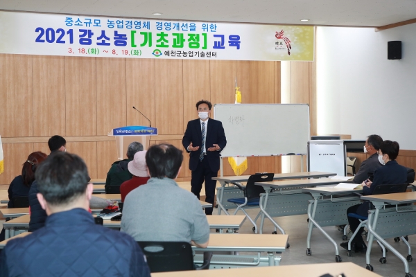[한국Q뉴스] 예천군농업기술센터는 18일 오후 2시 농업인회관 3층에서 중소규모 농업경영체 경영 개선으로 경쟁력을 향상시키기 위해 ‘2021 강소농’ 개강식과 함께 기본교육을 실시했다.