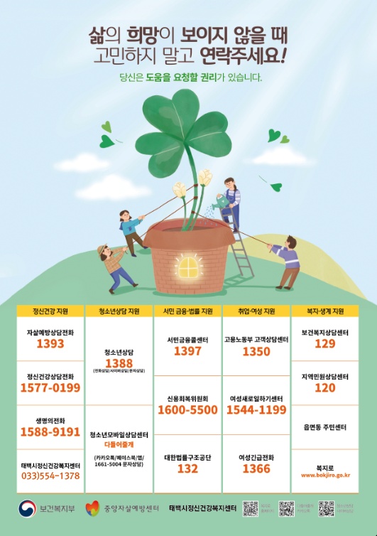 태백시정신건강복지센터 관계자는“본 사업들을 통해 태백시 지역주민들의 자살예방 및 자살률 감소 도모와 생명존중 문화조성 확산을 기대”한다고 밝혔다.