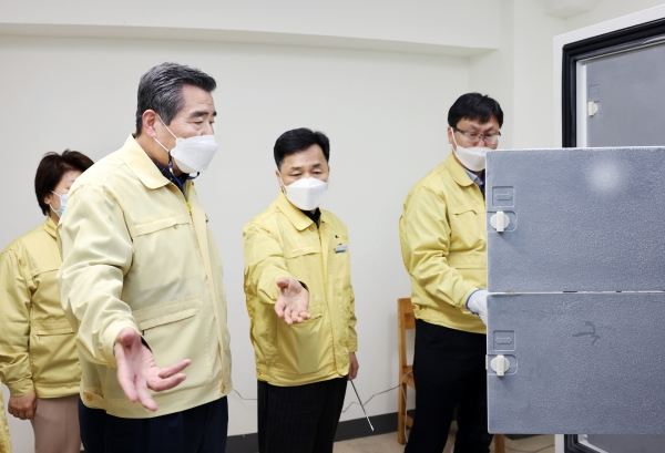 이날 김동일 보령시장은 예방접종센터를 찾아 예진부터 접종, 접종관찰, 퇴실까지의 모든 동선을 확인하고 특히 백신 보관·관리에 따른 가이드라인 준수를 강조하며 초저온 냉동고·백신전용 냉장고의 작동 상황 등을 면밀히 점검했다.