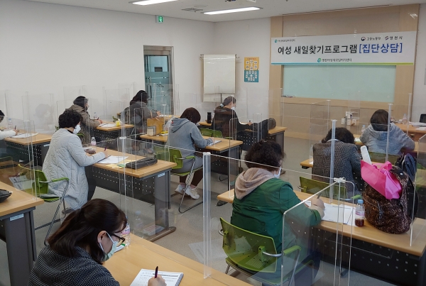 평생학습관 내 영천여성새로일하기센터에서 운영하는 이번 집단상담 프로그램 과정은 다양한 직업 탐색과 현재 노동시장에 대한 이해를 바탕으로 자신의 성향과 역량에 맞는 일을 찾아가는 것을 목표로 재취업 성공사례 공유와 상호 토론 등을 통해 새롭게 일을 시작하고자 하는 여성들에게 자신감을 불어넣고 체계적인 구직 설계를 지원하는 방식으로 진행된다.