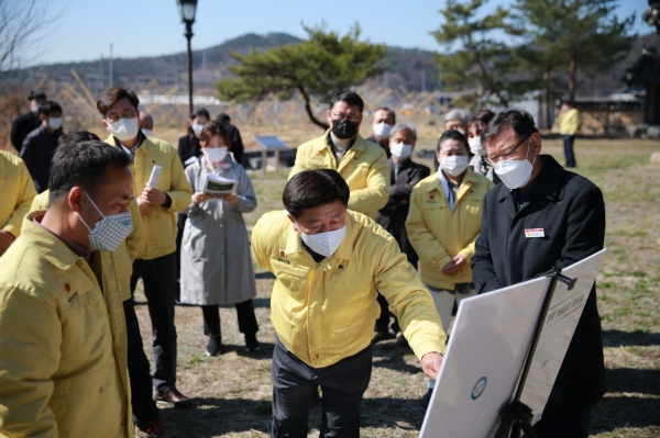 먼저 안향 기념공원 조성사업 관련해 순흥면에 위치한 안향 선생 생가터를 방문해 진입로 확장 및 운영 효율화 방안 등에 대한 다양한 의견을 제시했으며 선비세상 지하주차장 공사 현장에서는 개장 시 입구 교통체증에 대비한 진출입로 개선 방안 및 부실 공사 시공 방지 대책 추진을 당부했다.