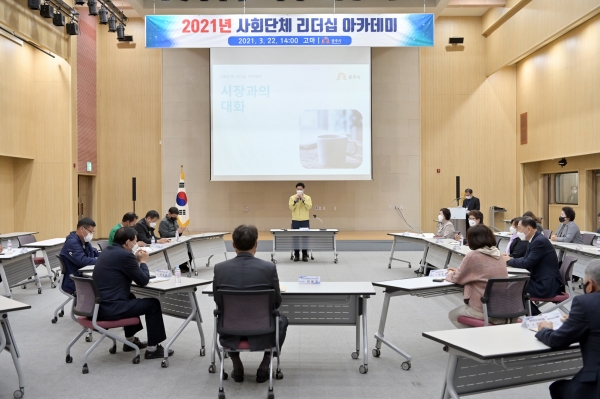 [한국Q뉴스] 공주시는 지난 22일 고마 컨벤션홀에서 다양한 분야의 사회단체장들을 대상으로 제1회 리더십 아카데미를 개최했다.