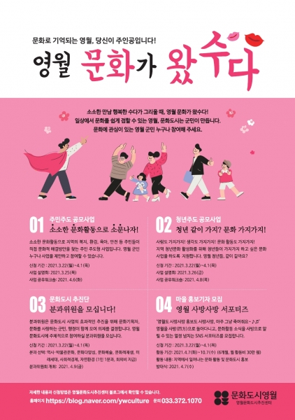 ‘ 영월 문화가 왔수다’ 주민공모사업을 문화도시추진센터 주관으로 진행한다.
