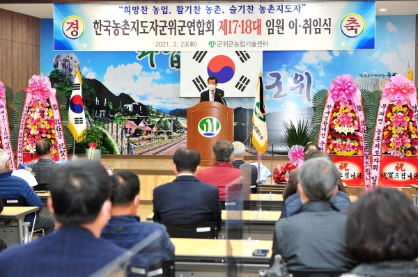 [한국Q뉴스] 한국농촌지도자 군위군연합회는 23일 코로나-19 방역지침을 준수해 최소내빈 및 임원 40여명만이 참석한 가운데 17·18대 이취임식을 개최했다.
