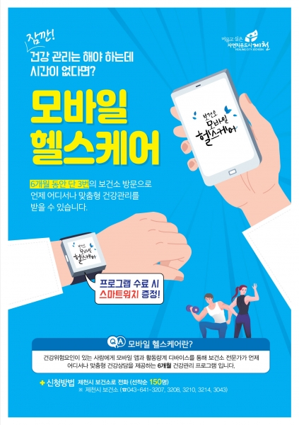 [한국Q뉴스] 제천시는 4월 15일까지 주민의 효과적인 건강관리를 위해 언택트 시대에 적합한 ‘2021 모바일 헬스케어사업’ 참가자 150명을 모집한다.