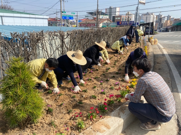 이상기 수도사업소장 외 직원 일동은 수도사업소 주변 쓰레기를 청소하고 화단에 금송, 반송, 꽃잔디를 비롯한 갖가지 종류의 아름다운 꽃들을 식재해 주민과 방문 민원인이 봄의 향기를 듬뿍 느낄 수 있도록 구슬땀을 흘렸다.