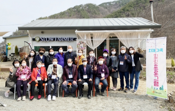 이날 치매가족들은 산림·농림 치매 전문 치유농장인 ‘슬로우파머’에서 꽃차 티백 만들기, 산마늘 페스토 만들기, 농장트레킹 및 명상 체험 등을 실시했다.