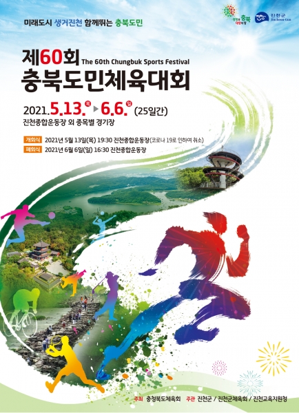 26일 진천군에 따르면 제60회 충북도민체육대회가 오는 5월 13일부터 6월 6일까지 25일간 진천종합운동장 일원에서 일반부 24개 종목을 대상으로 무관중 개최된다.