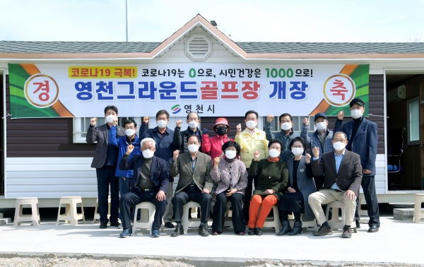 [한국Q뉴스] 영천시는 지난 26일 영천그라운드골프장에서 최기문 시장 외 20여명의 내빈이 참석한 가운데 그라운드골프장 개장식과 그라운드골프협회 사무실 개소식을 가졌다.