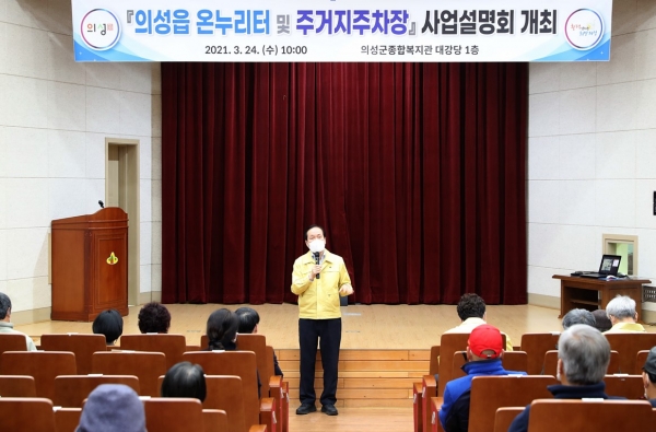 [한국Q뉴스] 의성군은 지난 24일 의성읍 철파리 종합복지관 대강당에서 의성읍 사회단체장과 이장을 대상으로‘의성읍 온누리터 및 주거지주차장’설명회를 개최했다.