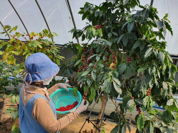 농업기술센터는 앞으로 생산량이 늘어나면 커피콩을 볶아 맛있는 커피를 맛보는 체험프로그램도 선보일 계획이라고 전했다.