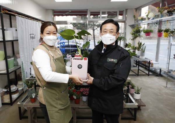 이 군수는 지난 30일 퇴근길에 관내 꽃집에서 화분을 구입하고 관내 소상공인의 어려움을 청취하는 시간을 가졌다.