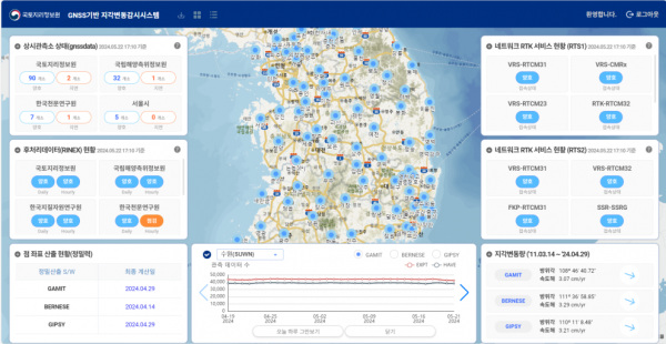 특히 시스템에서 연간 변화추세뿐 아니라 일 단위 계산결과도 확인 할 수 있어 우리나라 주변에 지각변동을 유발하는 강진이 발생하는 경우 국토에 미친 영향을 신속하게 파악할 수 있다.