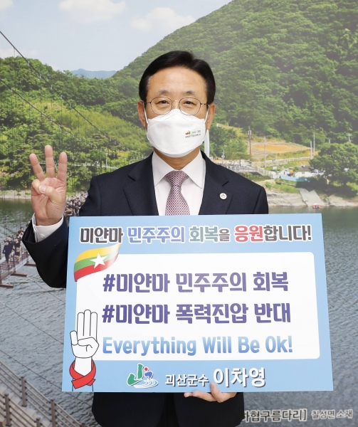 이 군수는 SNS를 통해 미얀마 군부의 무차별 살상 행위를 강력히 규탄하며 군부 쿠데타에 맞서 민주주의를 위해 투쟁하는 미얀마 국민들을 지지하고 응원한다고 밝혔다.