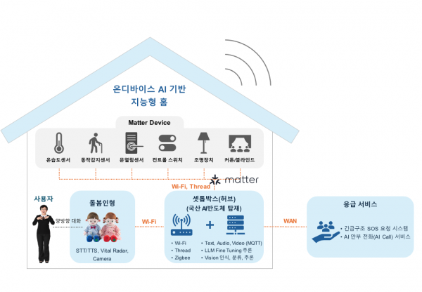 이에 과기정통부는 허브기기에 국산 AI 반도체를 탑재해 외부 클라우드를 사용하지 않고 모든 데이터를 집 안에서 처리하는 온디바이스AI 기반 지능형 홈 모델의 실현 가능성을 전문가와 함께 사전 검토했고 공모를 통해 효돌 컨소시엄을 실증사업 수행 컨소시엄으로 최종 선정했다.