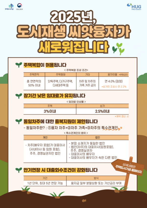 [한국Q뉴스] 국토교통부는 쇠퇴도심에서 상가, 창업시설을 조성하는 사업자에게 저리 대출을 지원하는 주택도시기금 ‘도시재생씨앗융자’를 ‘25년 1월 1일부터 개편 시행한다고 밝혔다.