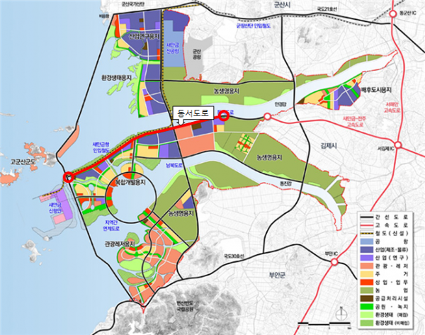 이번에 관할 결정이 이뤄진 총길이 16.47km인 ‘새만금 동서도로’는 종으로는 새만금 남북도로와 교차하며 횡으로는 새만금-전주 고속도로에 연결되는 새만금 간선도로망의 동서 중심축이다.