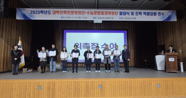 [한국Q뉴스] 경상남도교육청은 교육부가 발표한 2028 대학입시제도 개편안을 대비하기 위한 ‘대입진학전문위원단·수능문항출제위원단 발대식’을 27일 교육연수원에서 열었다.